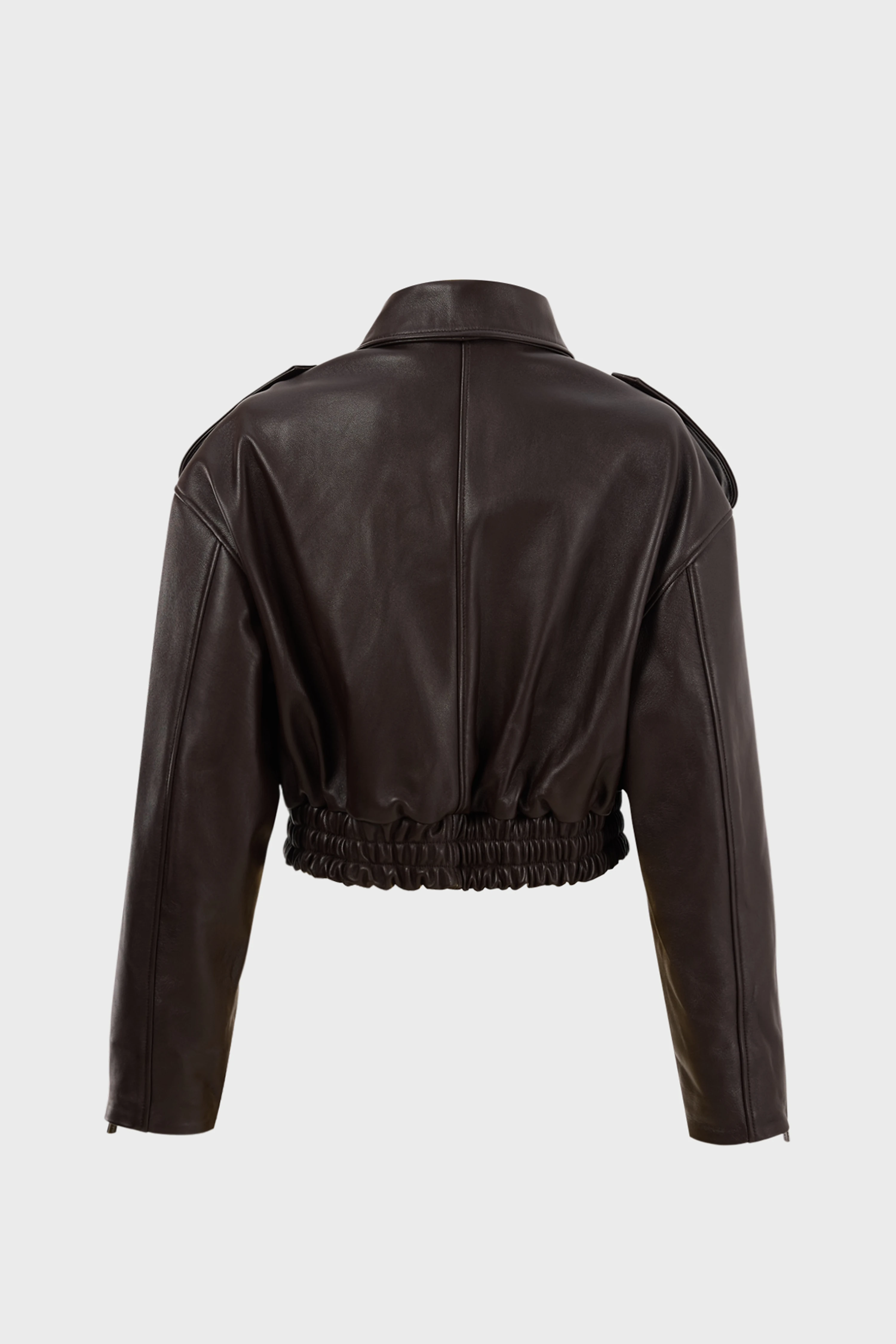 Malzeme: %100 kuzu derisi. Pürüzsüz dokusu ve zengin kahverengi tonu ile zarif bir görünüm sunar.